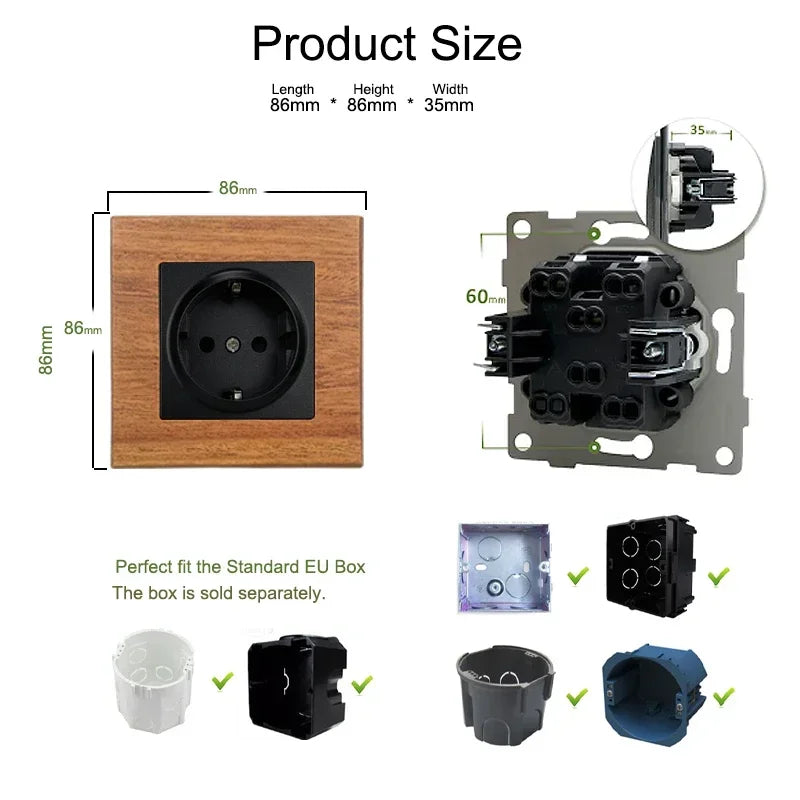 Voeg stijl en functionaliteit toe aan je interieur met dit Wallpad luxe houten EU stopcontact. Het elegante retrodesign combineert een schakelaar, USB-oplaadpoort, TV-aansluiting en datapoort in één strak paneel. Gemaakt van hoogwaardig hout en voorzien van pure koperen componenten voor maximale duurzaamheid en veiligheid.