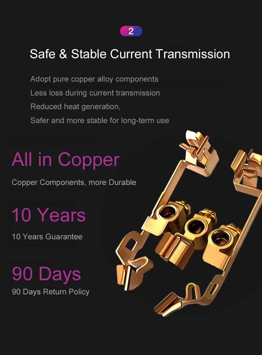 - 🛠️ Hoogwaardige materialen – Pure koper + zilvercontactpunten